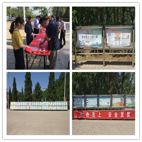 為進一步扎實開展“安全生產月”宣傳工作,營造濃厚的工作氣氛,北玻有限組織開展了以“生命至上、安全發展”為主題的安全生產系列宣傳活動。北玻有限組織開展全體員工在橫幅上進行簽名,并將簽名后的橫幅懸掛在廠區大門口;制作宣傳海報張貼于宣傳欄內;制作60塊安全宣傳展板擺放于廠門口;廠區主干路懸掛彩旗;為各班組發放安全學習書籍等學習讀物。以上活動的開展,有效烘托了“安全生產月”的濃厚氛圍,使“安全生產月”的主題更加深入人心。