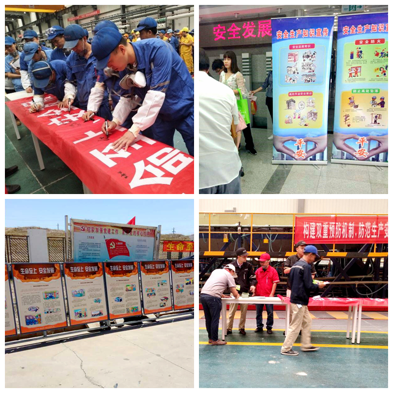 各分子公司在廠區(qū)各通道、大門口、辦公區(qū)門口懸掛安全生產(chǎn)宣傳彩旗,在醒目位置擺放安全宣傳欄,張貼安全生產(chǎn)宣傳橫幅,營造安全生產(chǎn)的濃厚氛圍;組織廣大員工逐一在主題橫幅上簽字,將“生命至上、安全發(fā)展”記在心中,用實(shí)際行動(dòng)來詮釋安全生產(chǎn)。